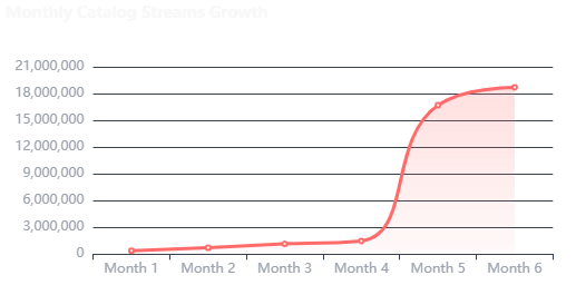 An independent electronic music label with 12 artists was struggling to compete with major labels. Their total catalog had generated only 2.3M streams over two years, and they needed to demonstrate growth potential to secure distribution deals and attract new talent.